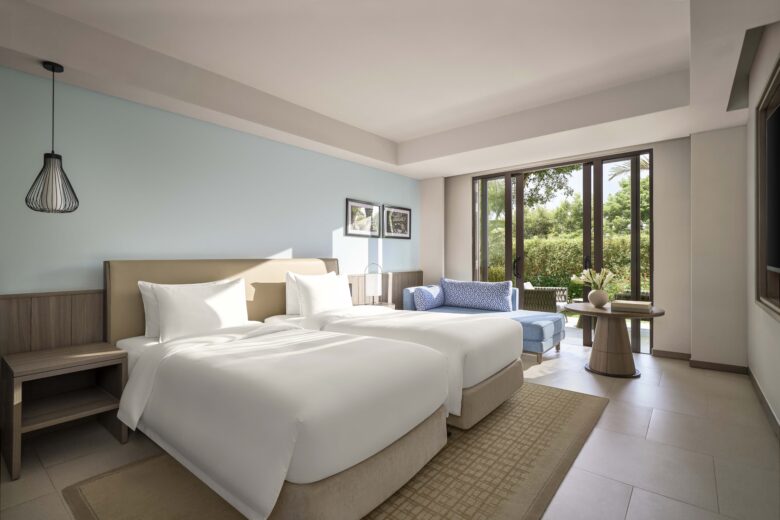 Get all cozy in our elegantly crafted deluxe room, where local decor meets modern amenities. This room features plush twin beds, a lounger, a separate bath and shower, and a well-stocked minibar. A tranquil space overlooking manicured gardens designed for restful nights and refreshed mornings.